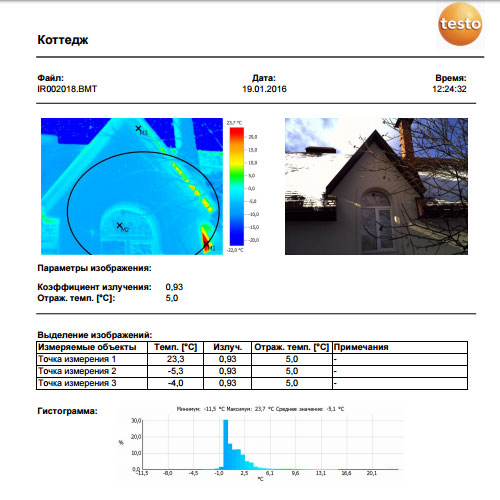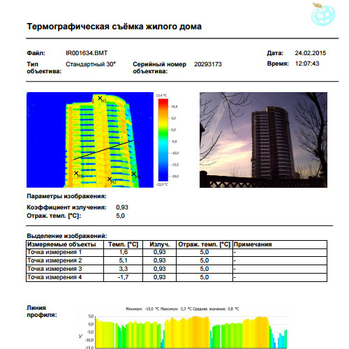 В случае поверхностного исследования тпелопотери\холодопотерь, съемка тепловизором включает в себя следующие показания: